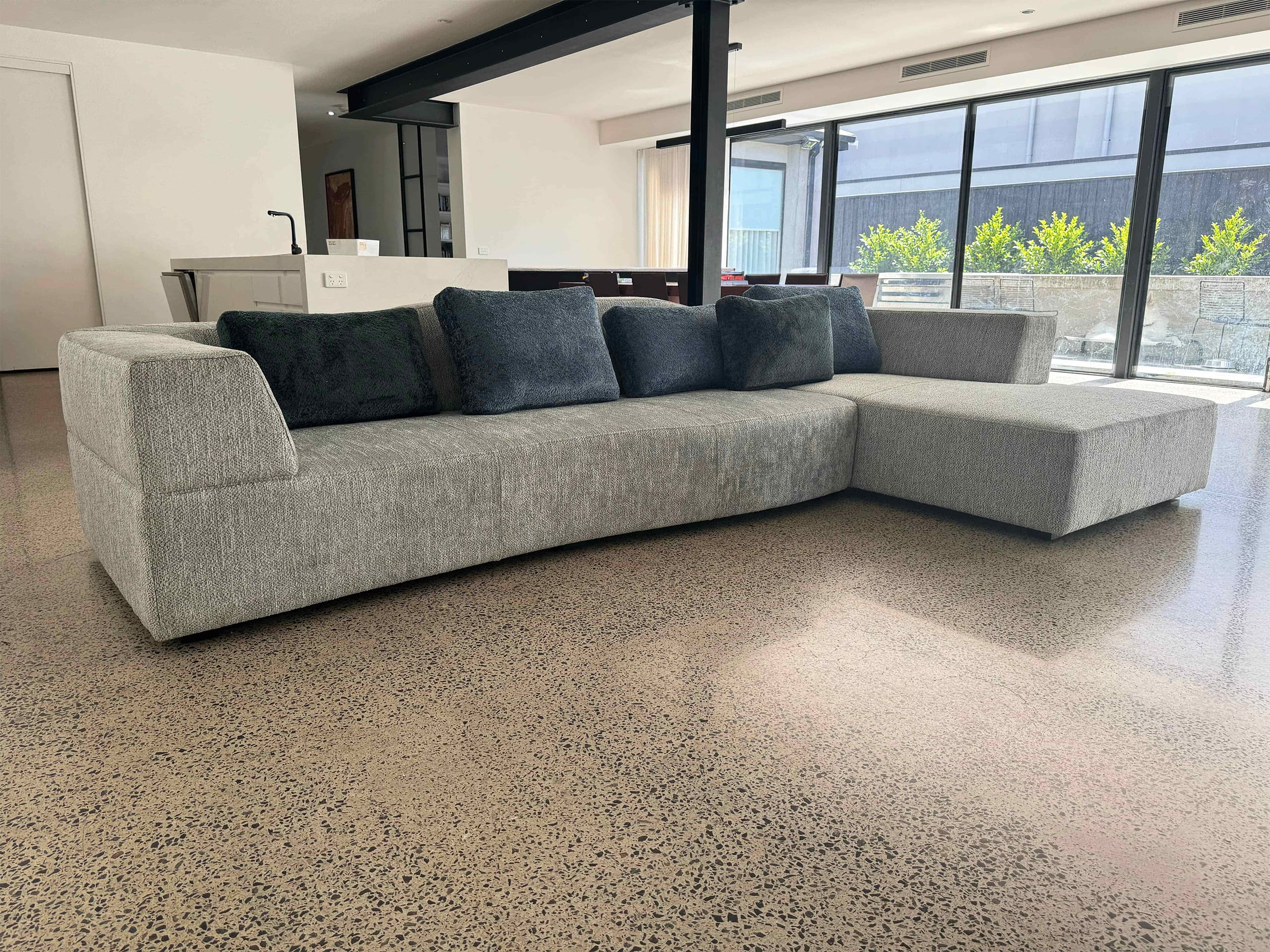Each luxury curved sofa and modular sofa is custom designed and entirely made in Australia to a premium standard of quality and finish. Dimensions, colour, and finish of our luxury furniture can all be custom made to your specific requirements, with a wide range of luxurious fabrics or leathers and frame colour options available.