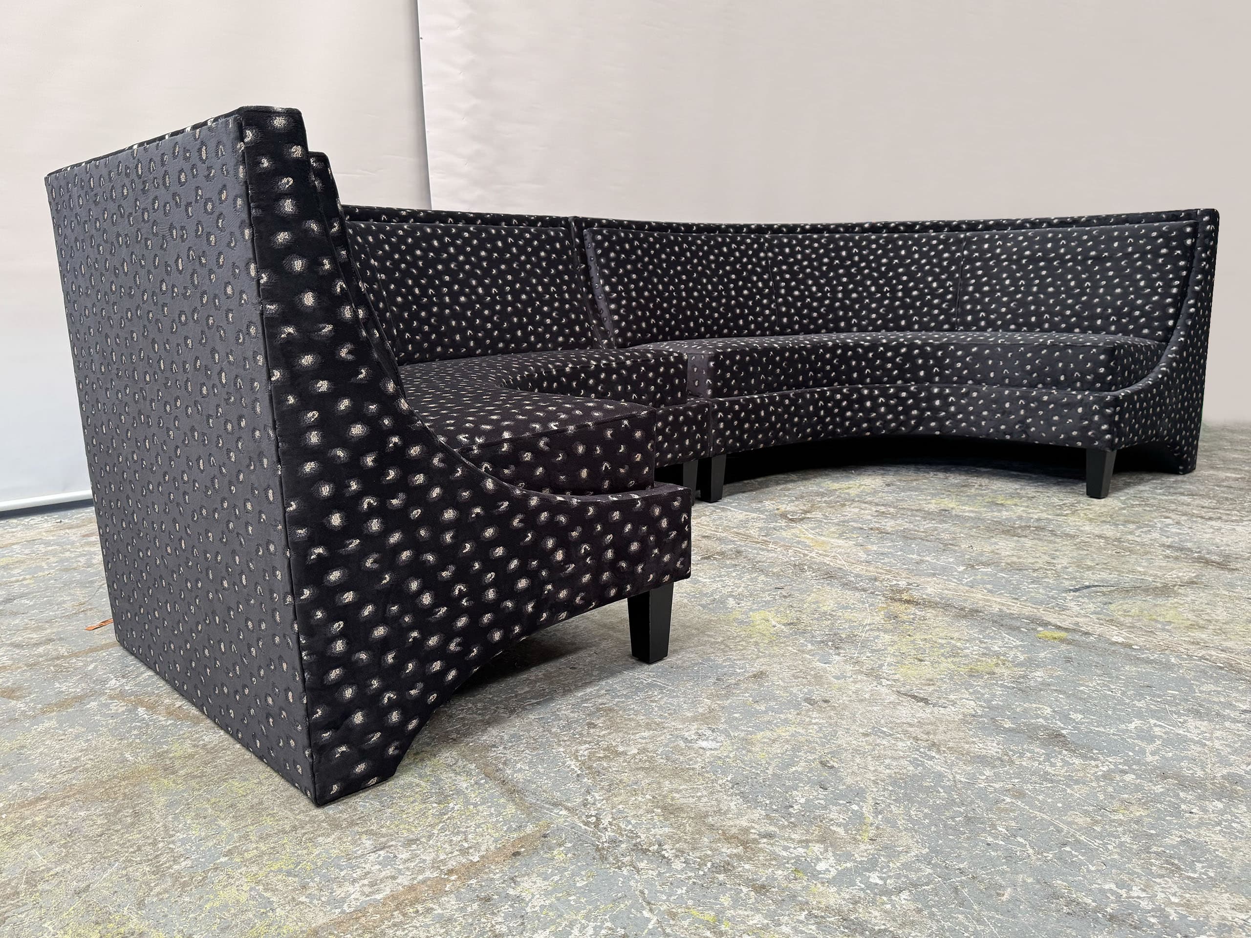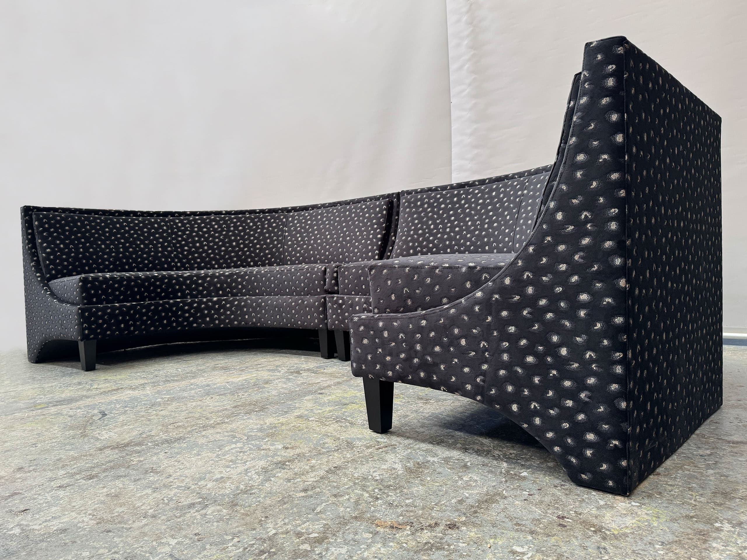 Each luxury curved sofa and modular sofa is custom designed and entirely made in Australia to a premium standard of quality and finish. Dimensions, colour, and finish of our luxury furniture can all be custom made to your specific requirements, with a wide range of luxurious fabrics or leathers and frame colour options available.