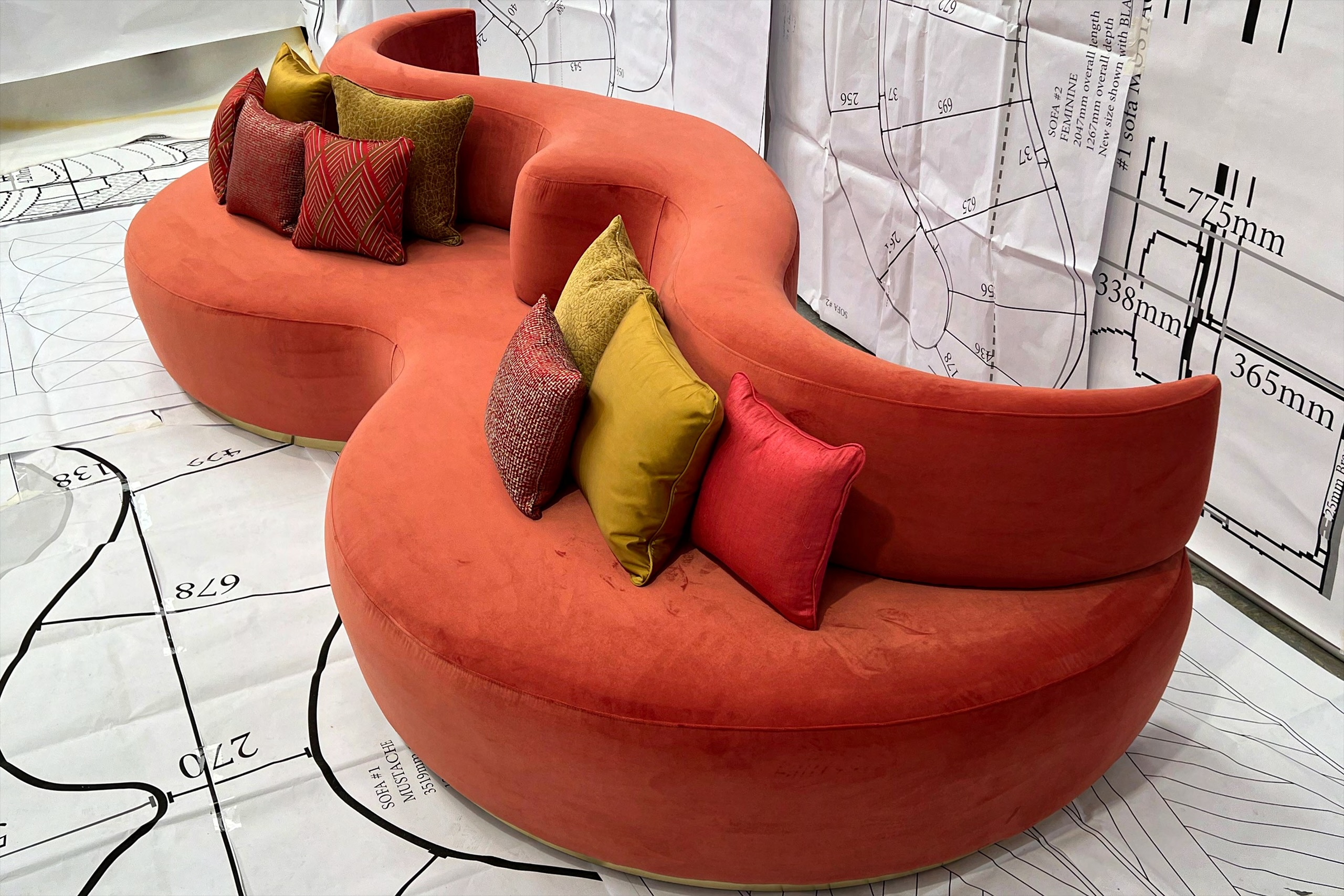 Each luxury curved sofa and custom made modular sofa is custom designed to a premium standard of quality and finish. Dimensions, colour, and finish of our Australian made furniture can all be tailored to your specific requirements, with a wide range of luxurious fabrics or leathers and frame colour options available.