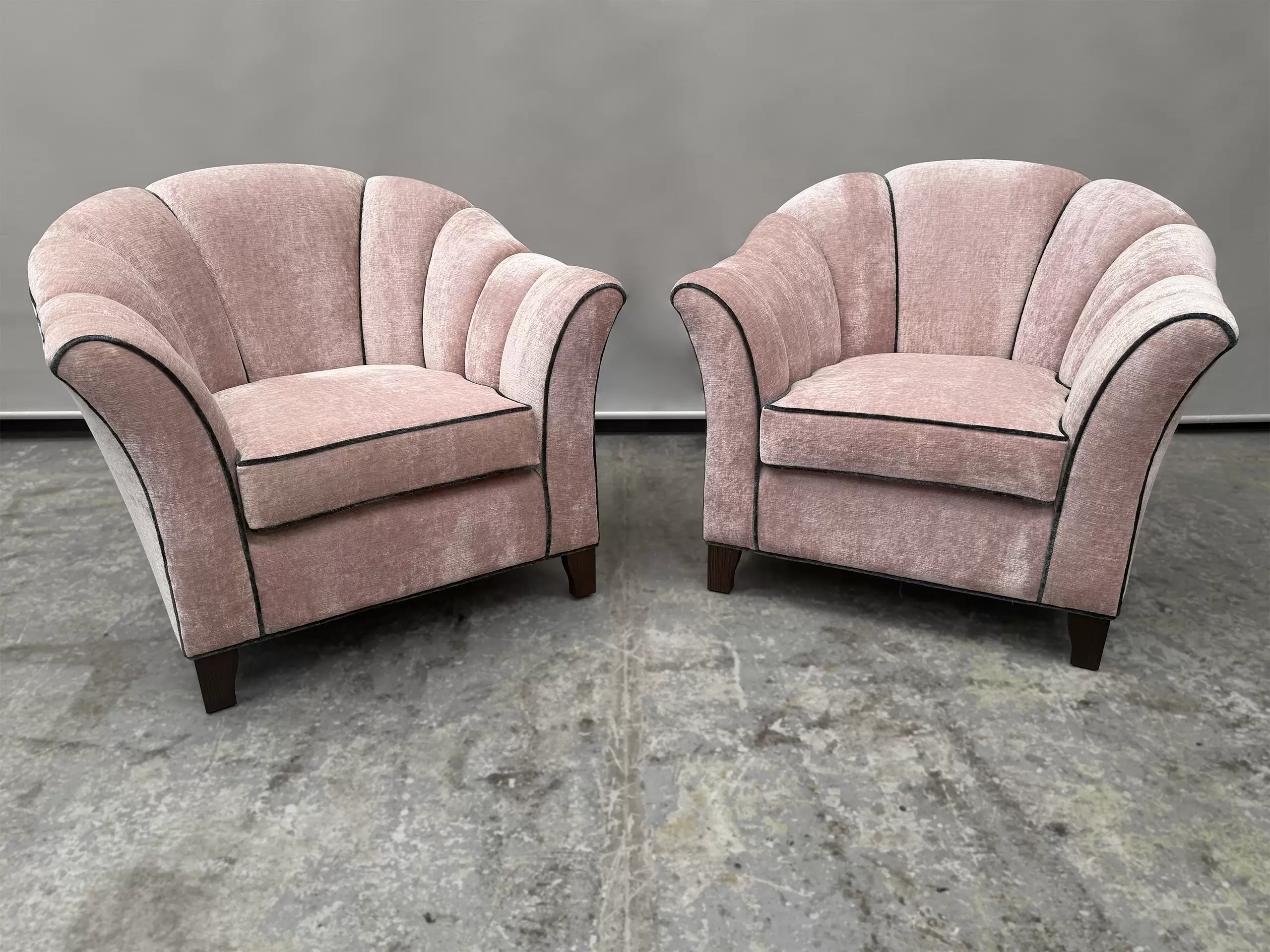 This custom made Art Deco armchair features a streamlined design that perfectly balances modern aesthetics with exceptional comfort. This Australian made armchair showcases gently curved backrests that provide excellent support, while the elegantly shaped armrests harmoniously complement the overall silhouette, enhancing both functionality and visual appeal.