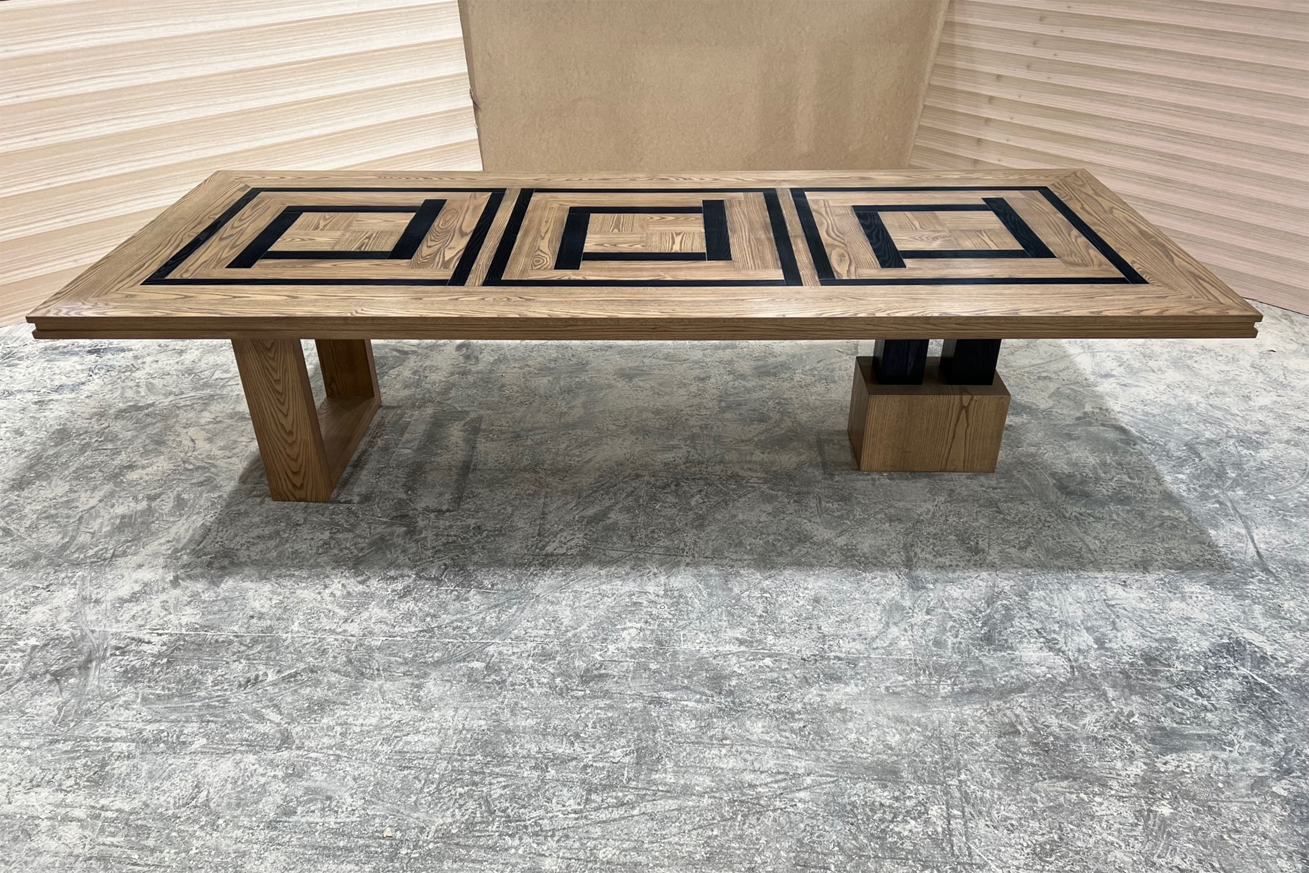 Each parquetry dining table is custom designed and entirely made in Australia to a premium level of quality and finish. Dimensions, parquetry design, colour, level of ageing, and finish of our luxury furniture can all be custom made to your specific requirements.