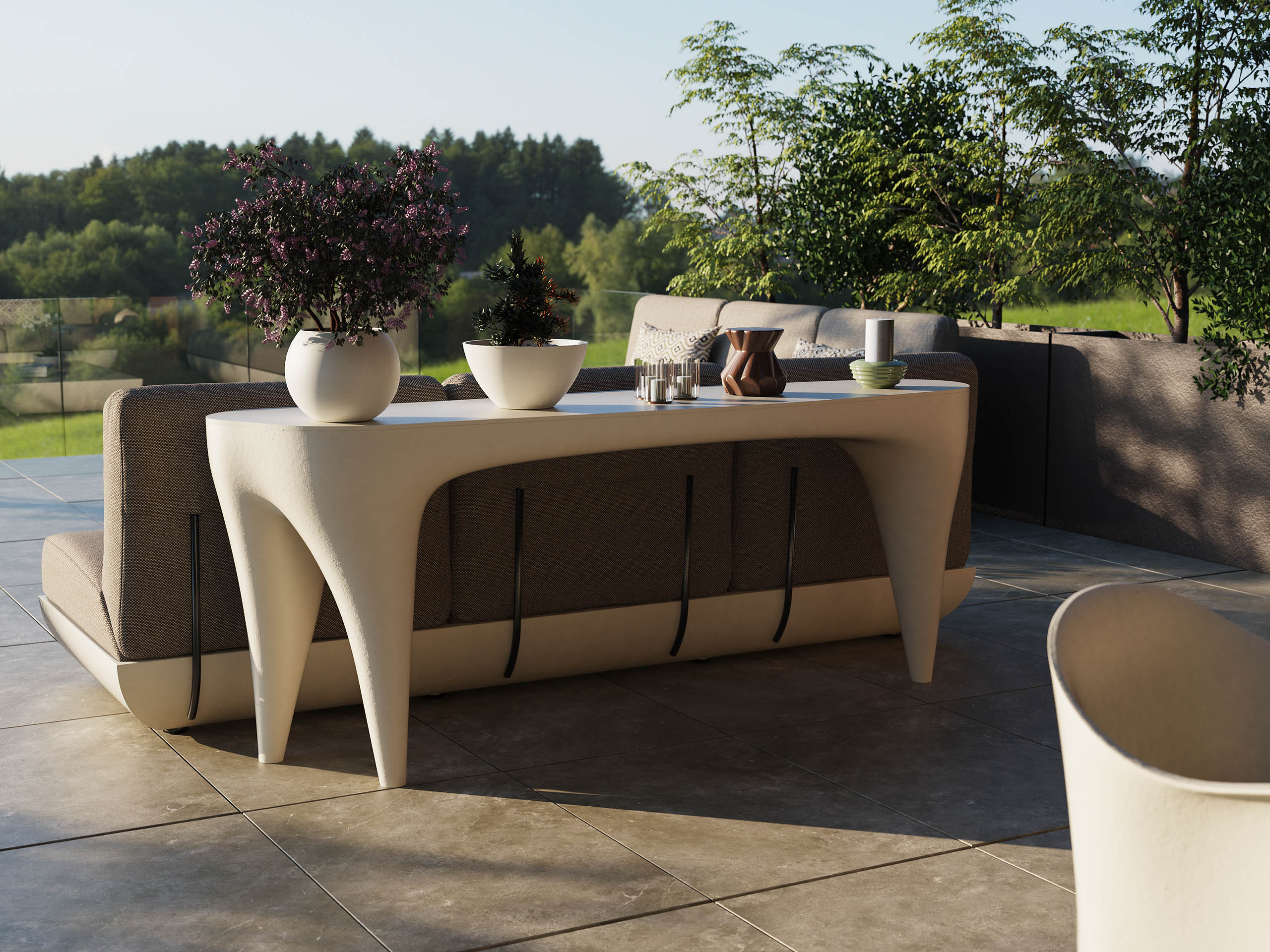 This outdoor Mid Century Modern console table by luxury interior designer and furniture manufacturer Mark Alexander, in collaboration with GANSK outdoor furniture, is a sculptural luxury outdoor furniture piece designed for premium Australian settings. Its fluid, bold form and elegantly curved proportions create a striking architectural presence, perfectly suited to luxury residential terraces, balconies, or high-end spaces. Custom designed and custom made, this bespoke modern outdoor furniture piece exemplifies designer outdoor furniture and architectural luxury outdoor furniture, making it a standout addition to luxury outdoor furniture across Australia.