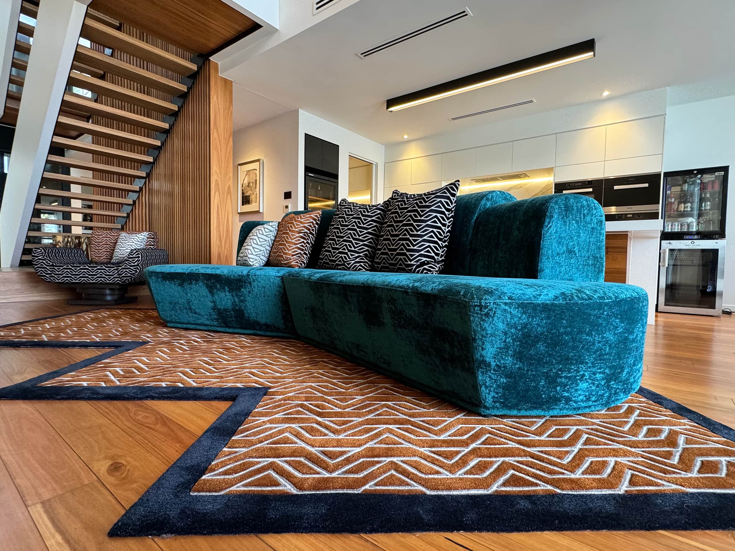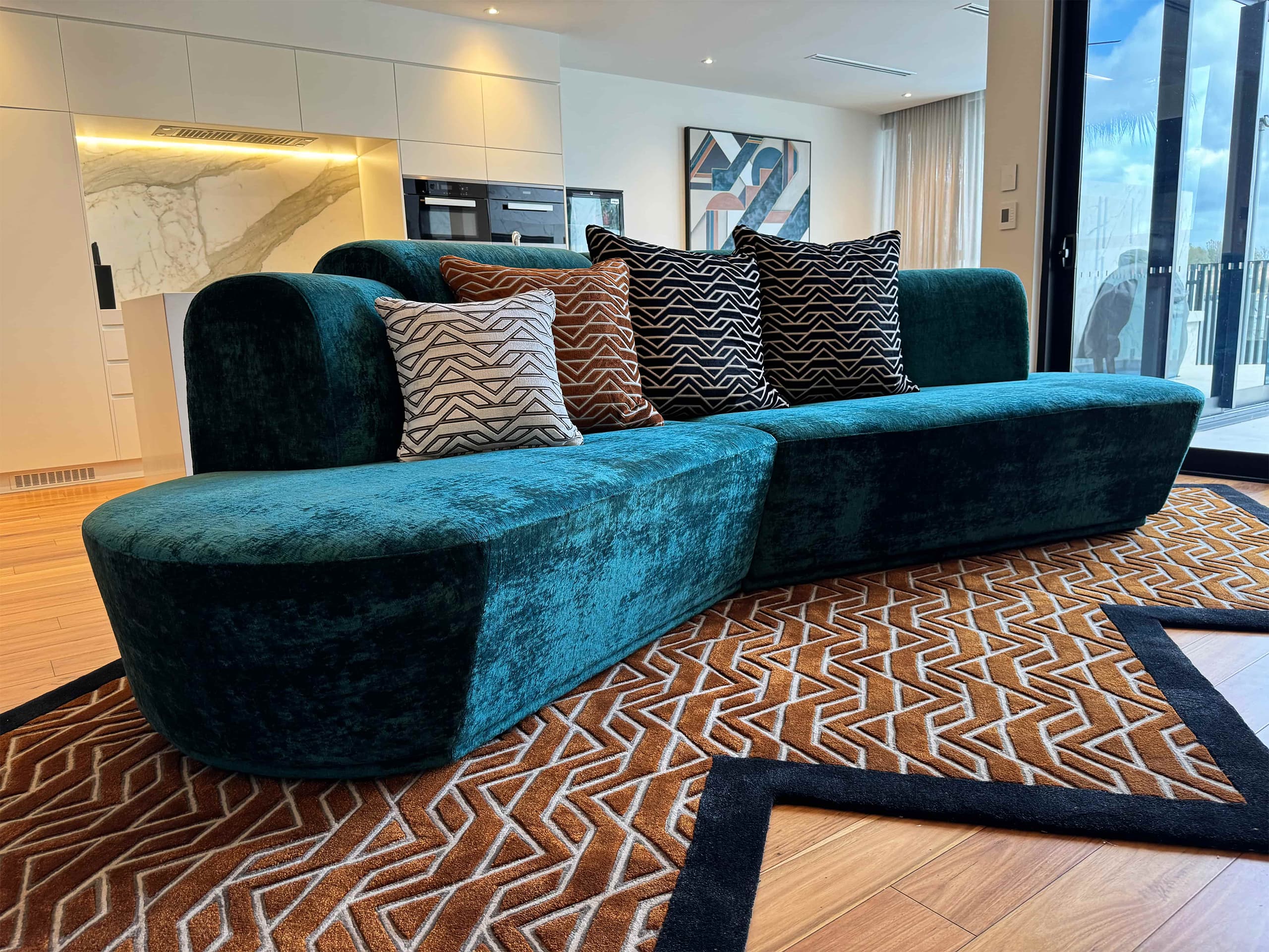 Each luxury curved sofa and custom made modular sofa is custom designed to a premium standard of quality and finish. Dimensions, colour, and finish of our Australian made furniture can all be tailored to your specific requirements, with a wide range of luxurious fabrics or leathers and frame colour options available.
