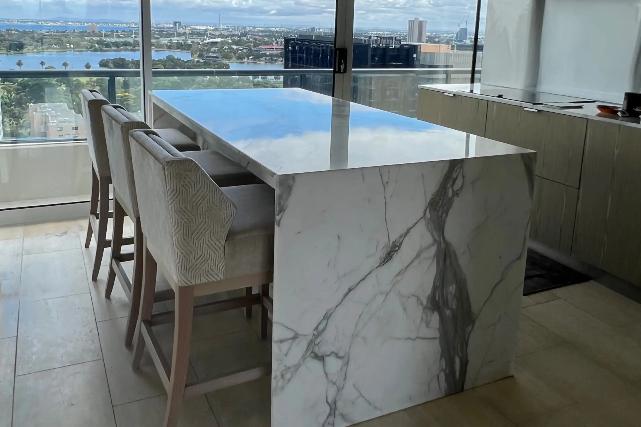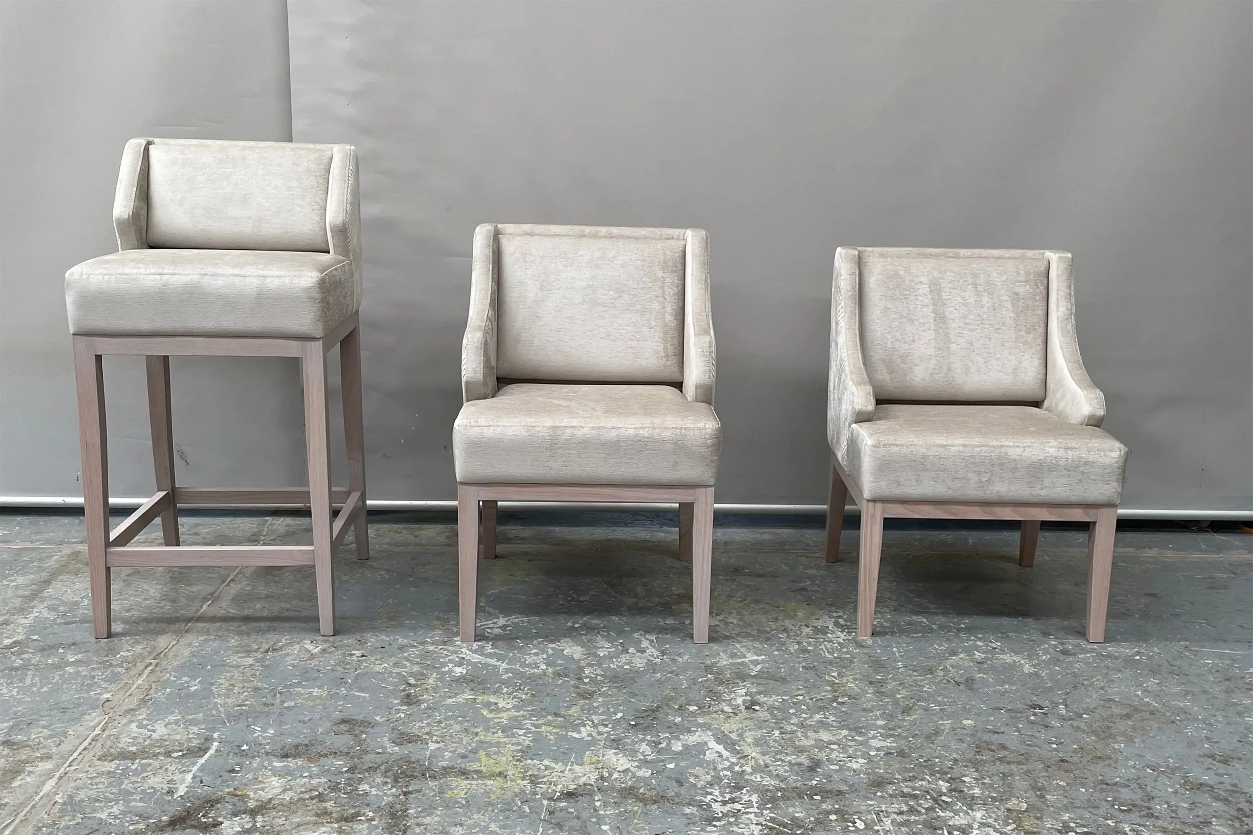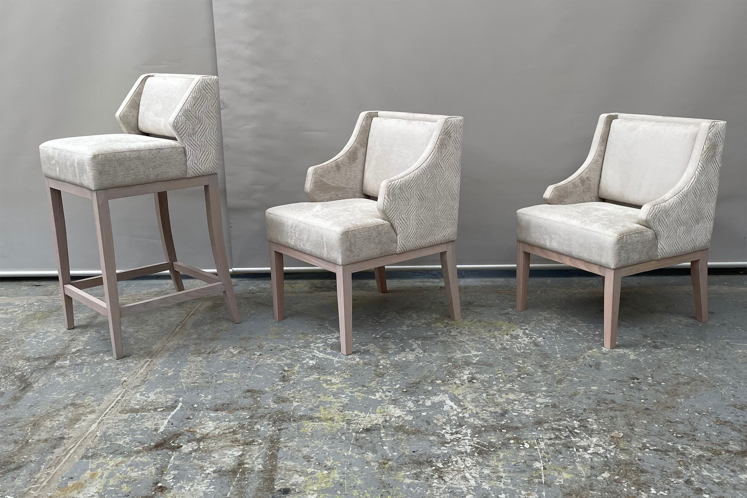 Each kitchen and bar stool is custom designed and entirely made in Australia to a premium standard of quality and finish. Dimensions, colour, and finish of our luxury furniture can all be custom made to your specific requirements, with a wide range of luxurious fabrics or leathers and frame colour options available.