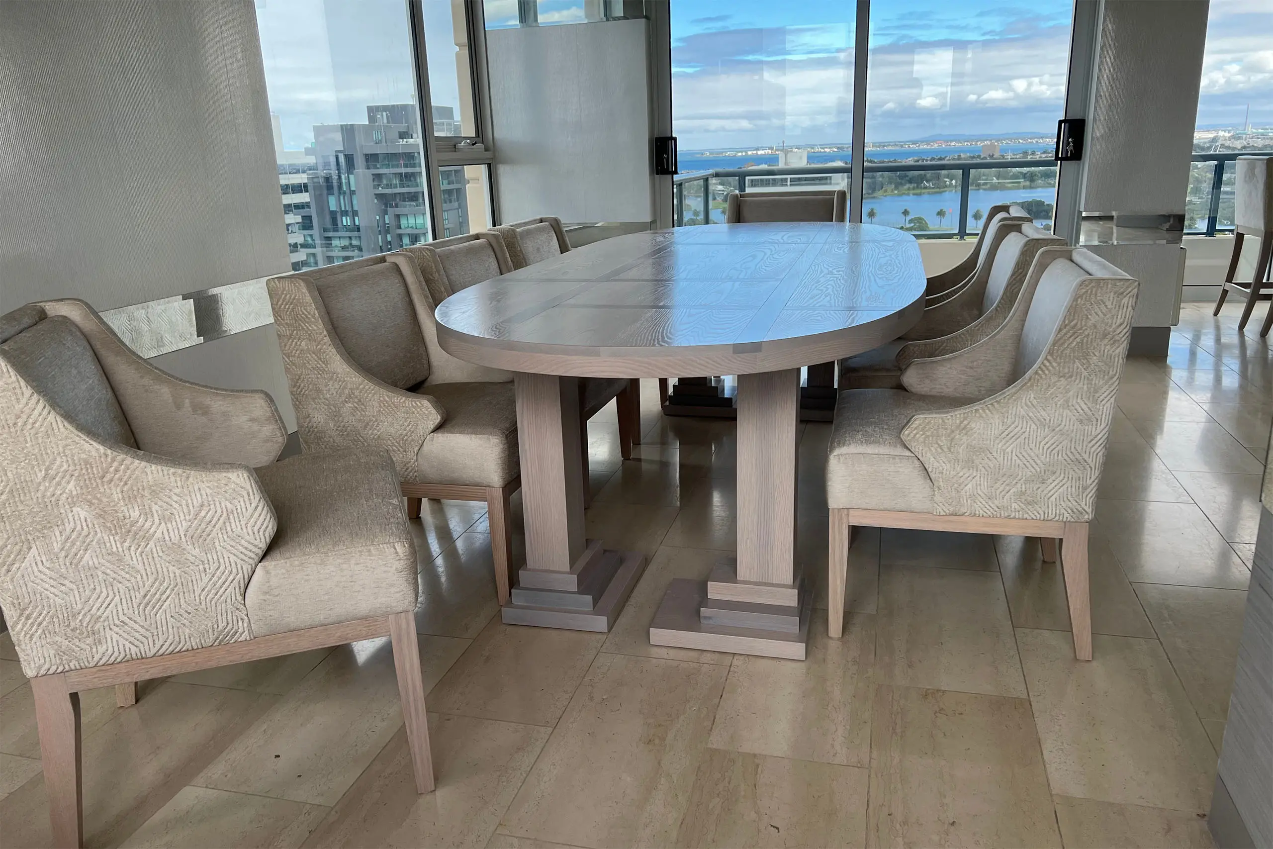 Each Australian made dining chair is custom designed to a premium standard of quality and finish. Dimensions, colour, and finish of our custom made furniture can all be tailored to your specific requirements, with a wide range of luxurious fabrics or leathers and frame colour options available.
