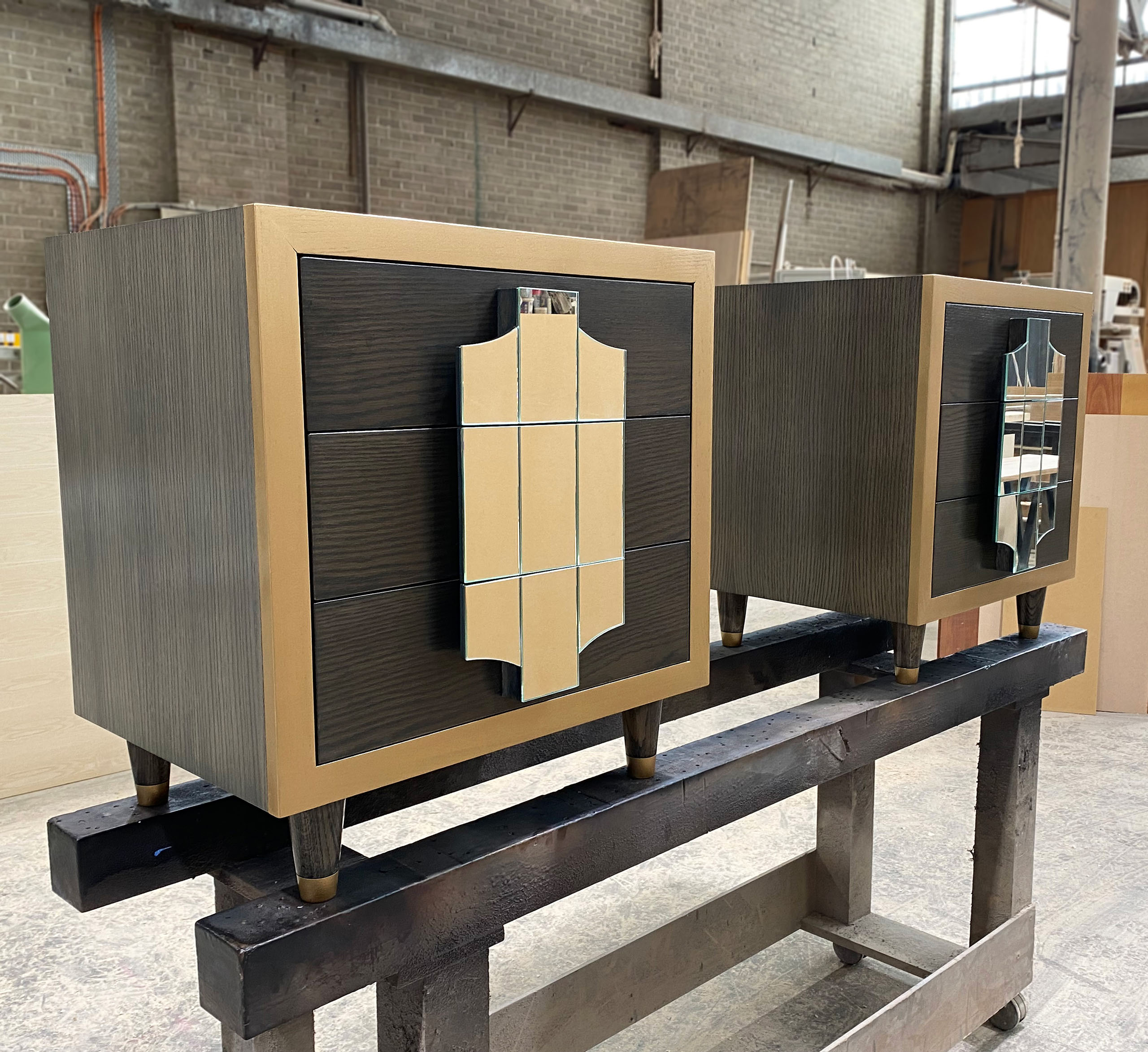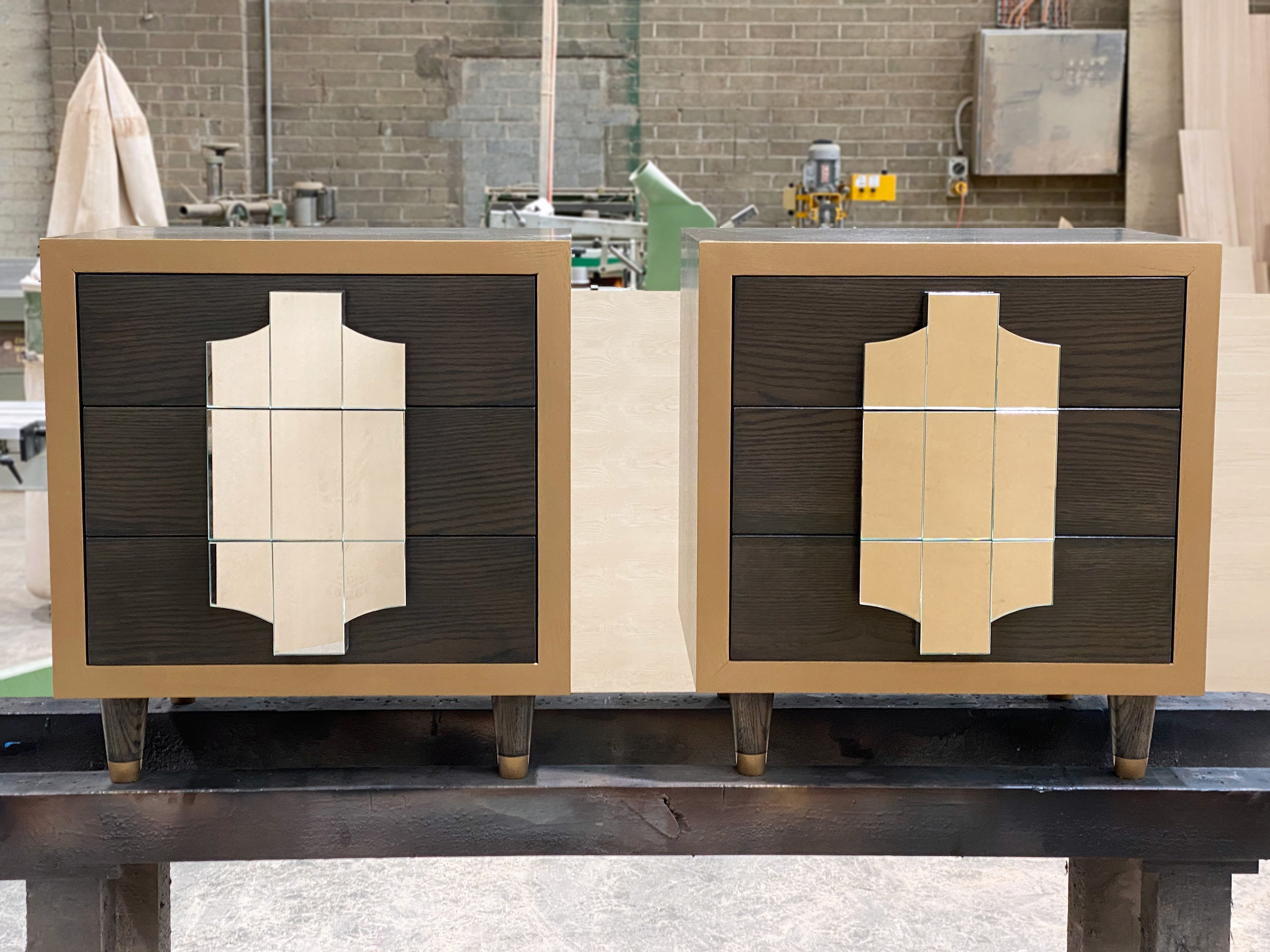 Custom designed and Australian made modern bedside tables. Handcrafted from solid timber, finished with a sleek panelled glass front. Made to a high quality using premium materials and finishes for a superior result. Design made to suit client and their home.