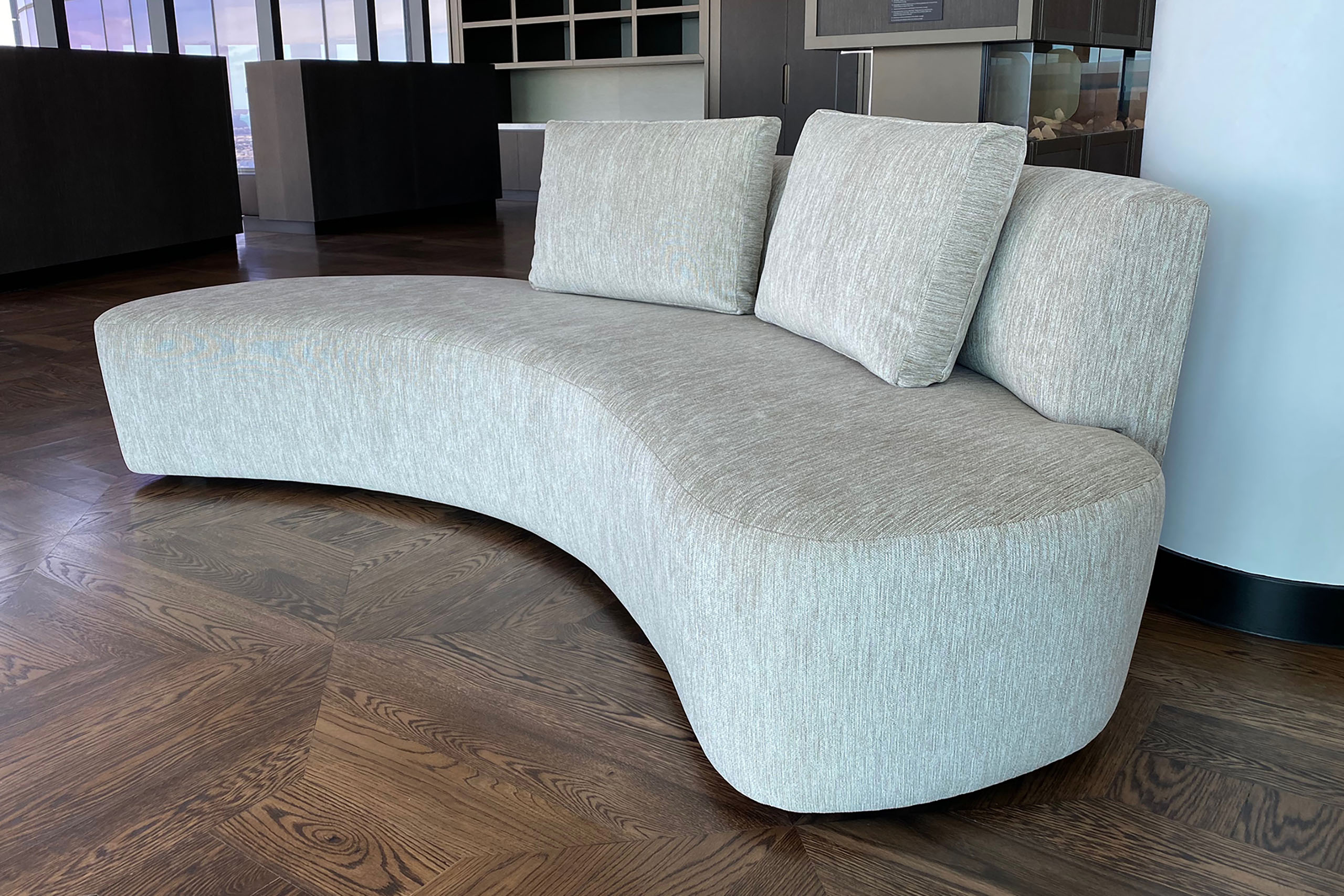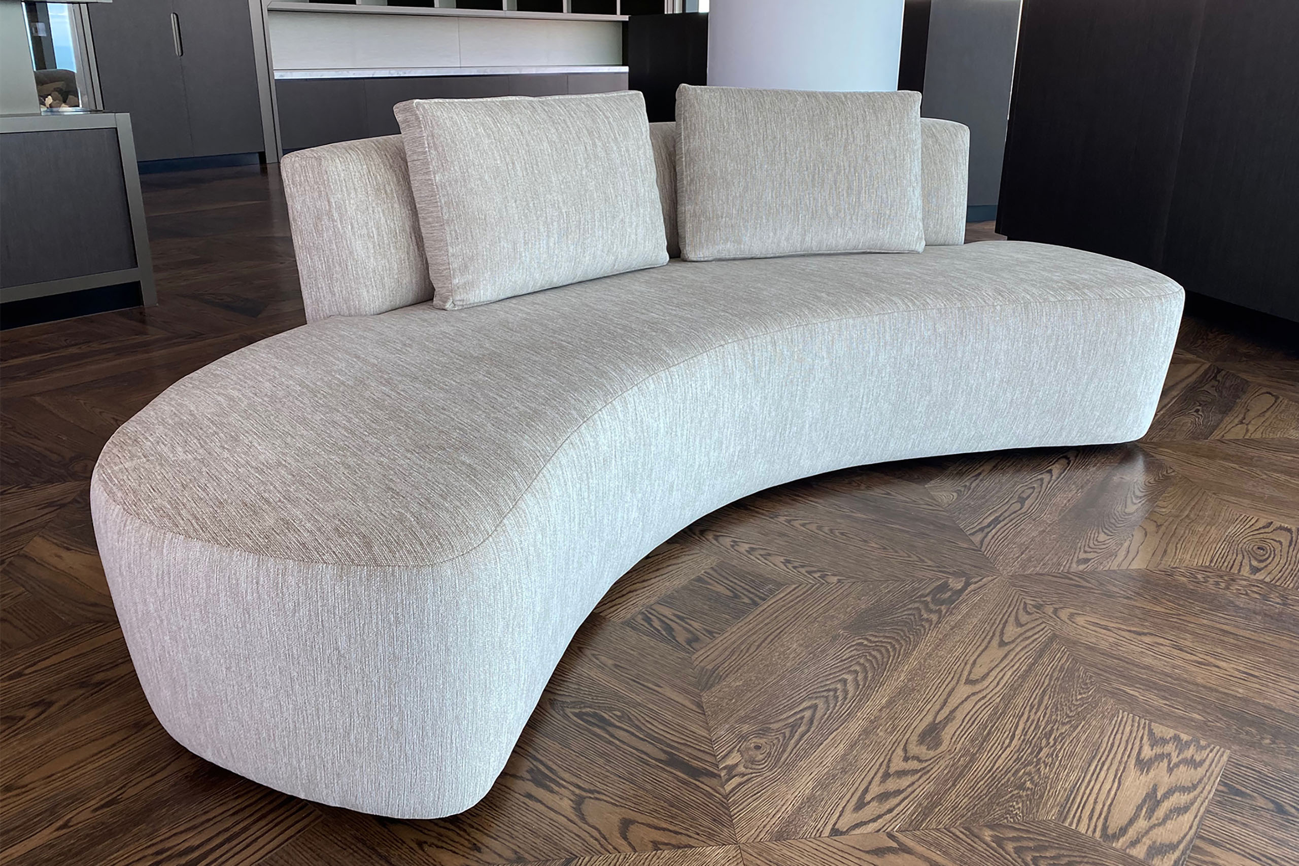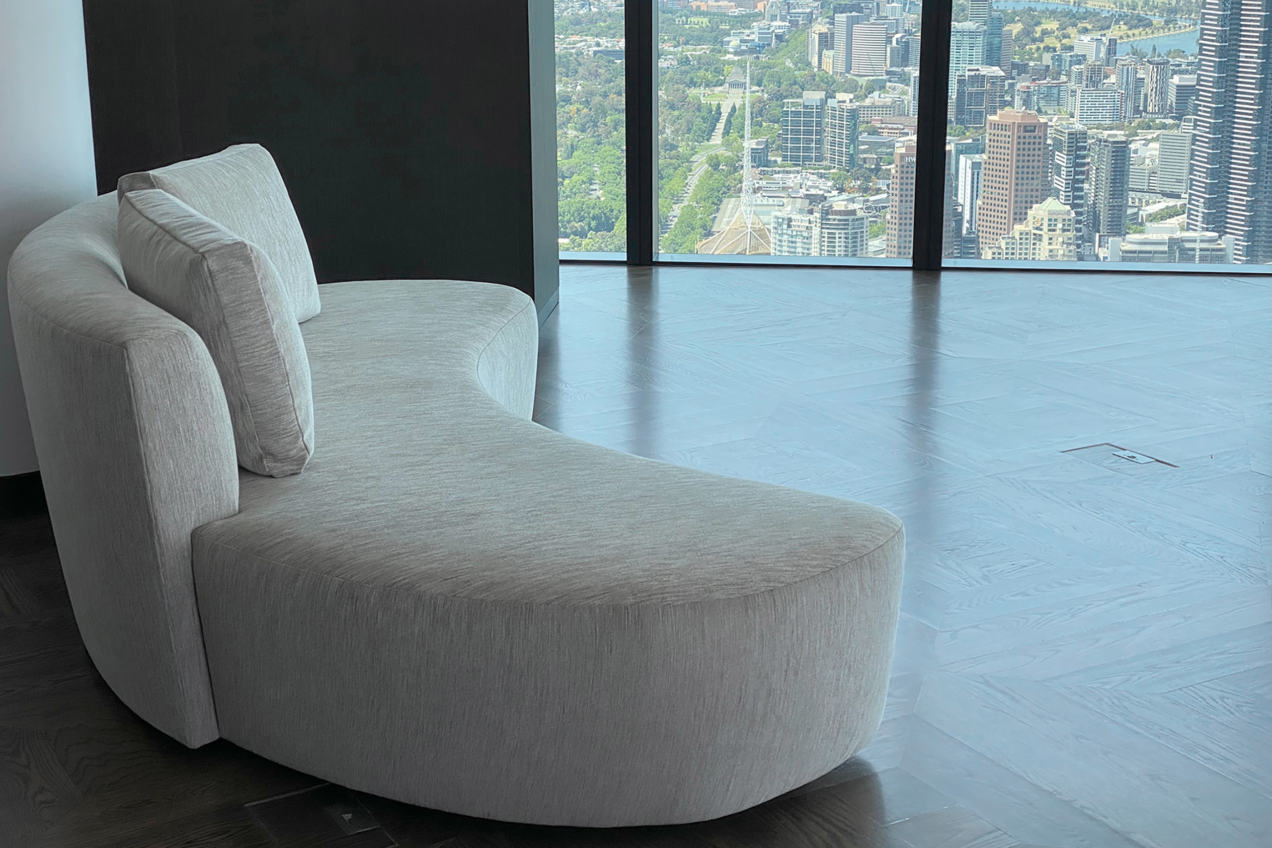Each luxury curved sofa and modular sofa is custom designed and entirely made in Australia to a premium standard of quality and finish. Dimensions, colour, and finish of our luxury furniture can all be custom made to your specific requirements, with a wide range of luxurious fabrics or leathers and frame colour options available.