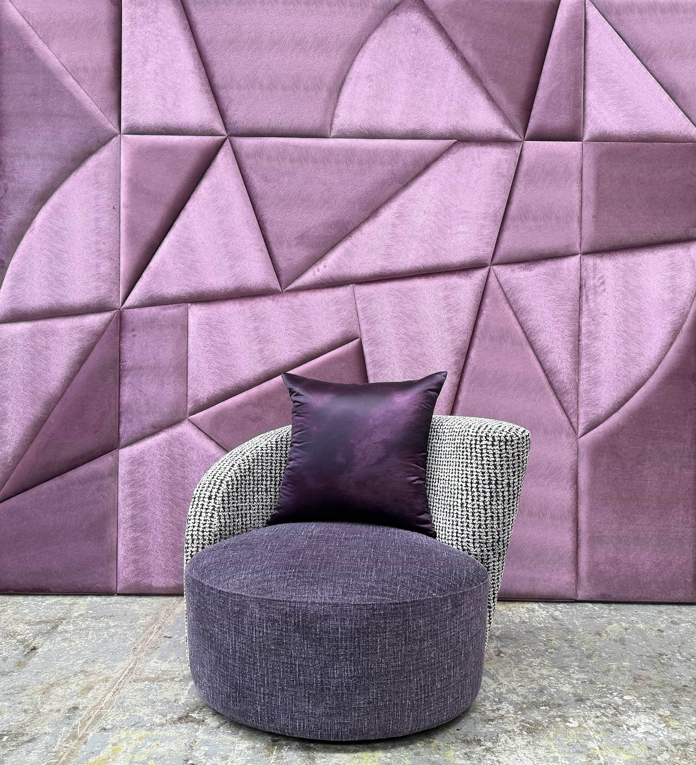 Inspired by Modernist influences, this stunning armchair features a swivel base and bold accents of colour, upholstered in luxurious fabric. Custom designed and Australian made, it makes a striking statement in any interior space.