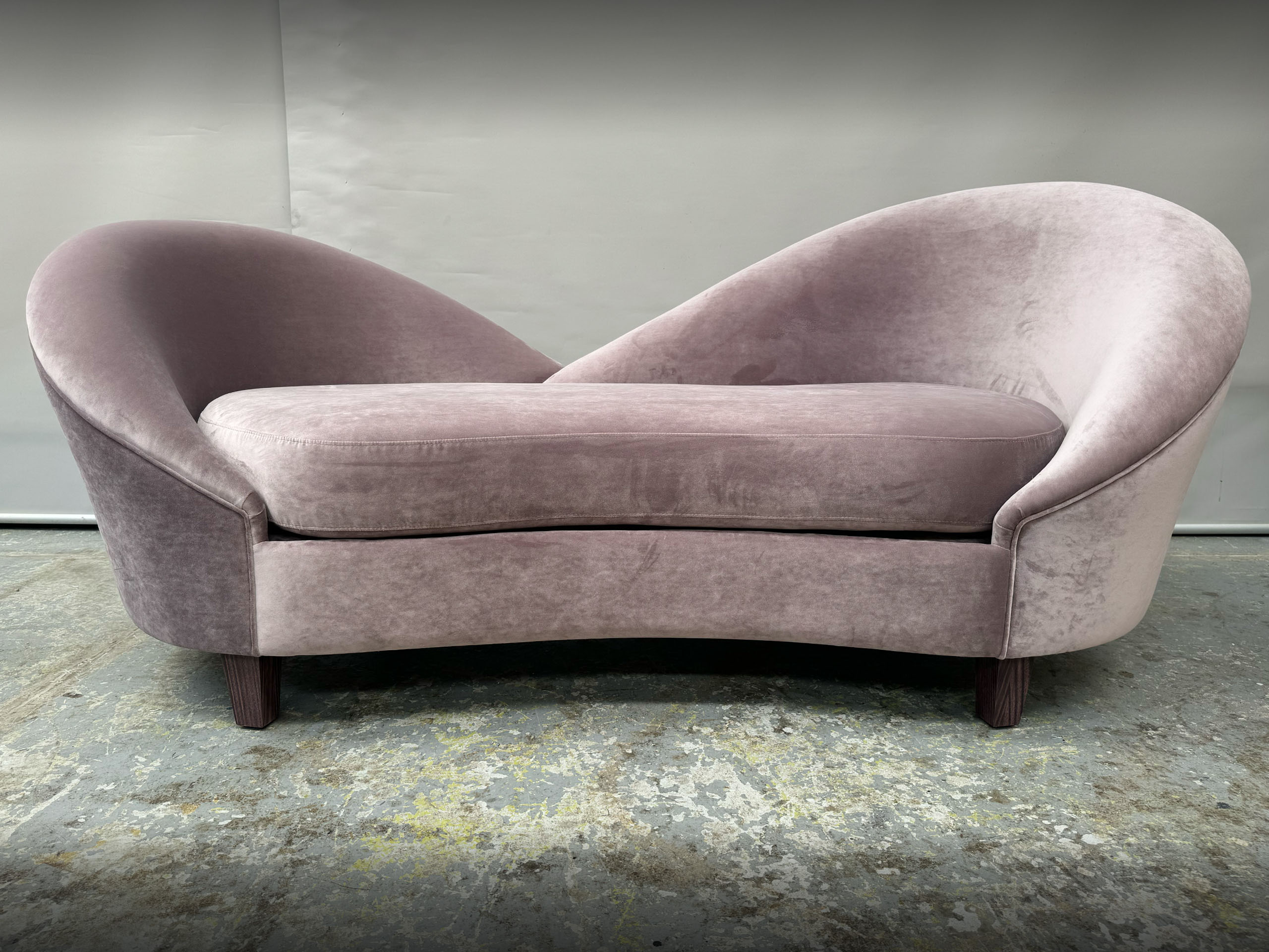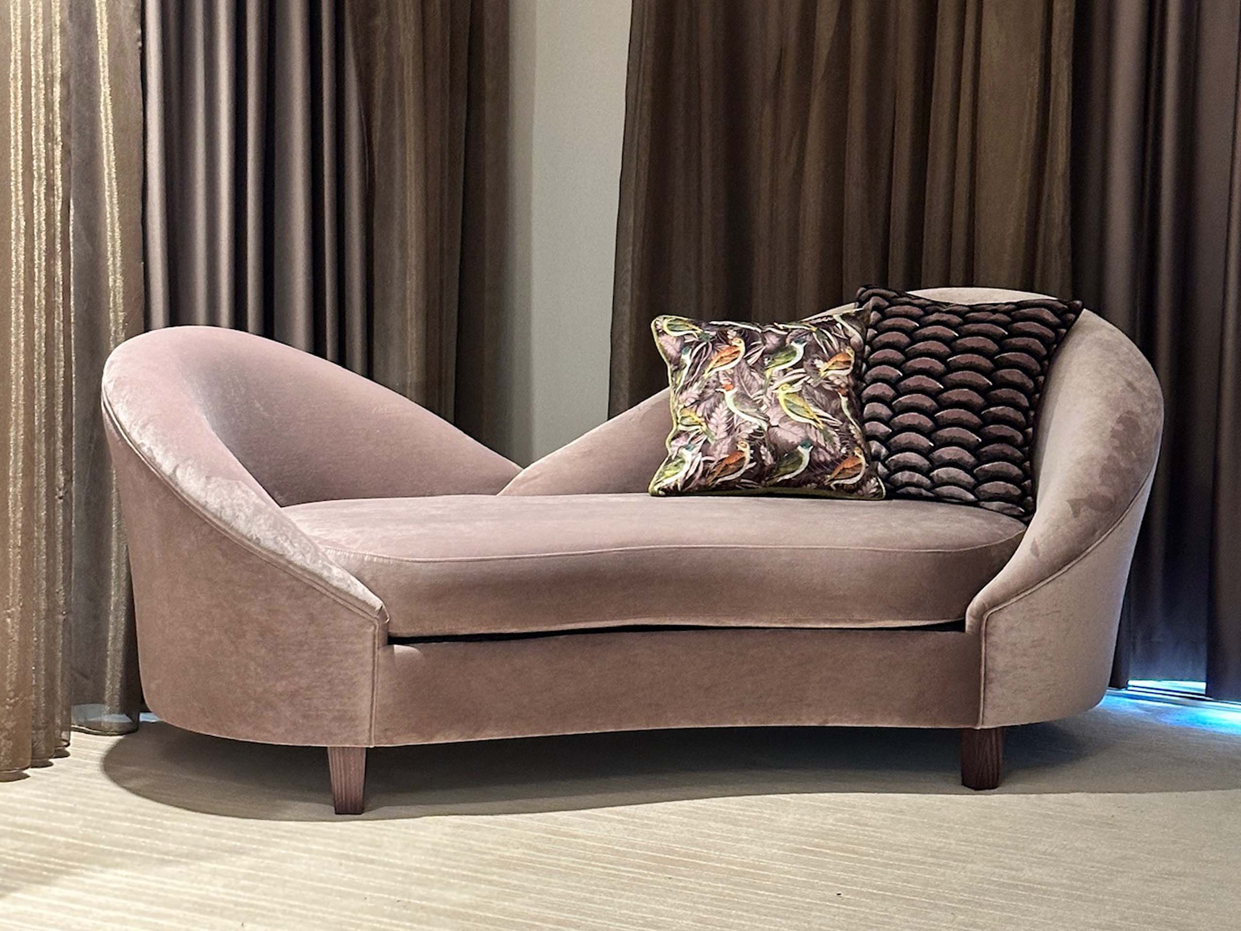 This elegant modernist chaise lounge features a sweeping silhouette and a customisable timber leg finish to complement your bedroom design. Tailored by luxury interior and furniture designer Mark Alexander, it seamlessly blends sophistication with functionality. Options of scatter cushions and coordinating room items are also available.