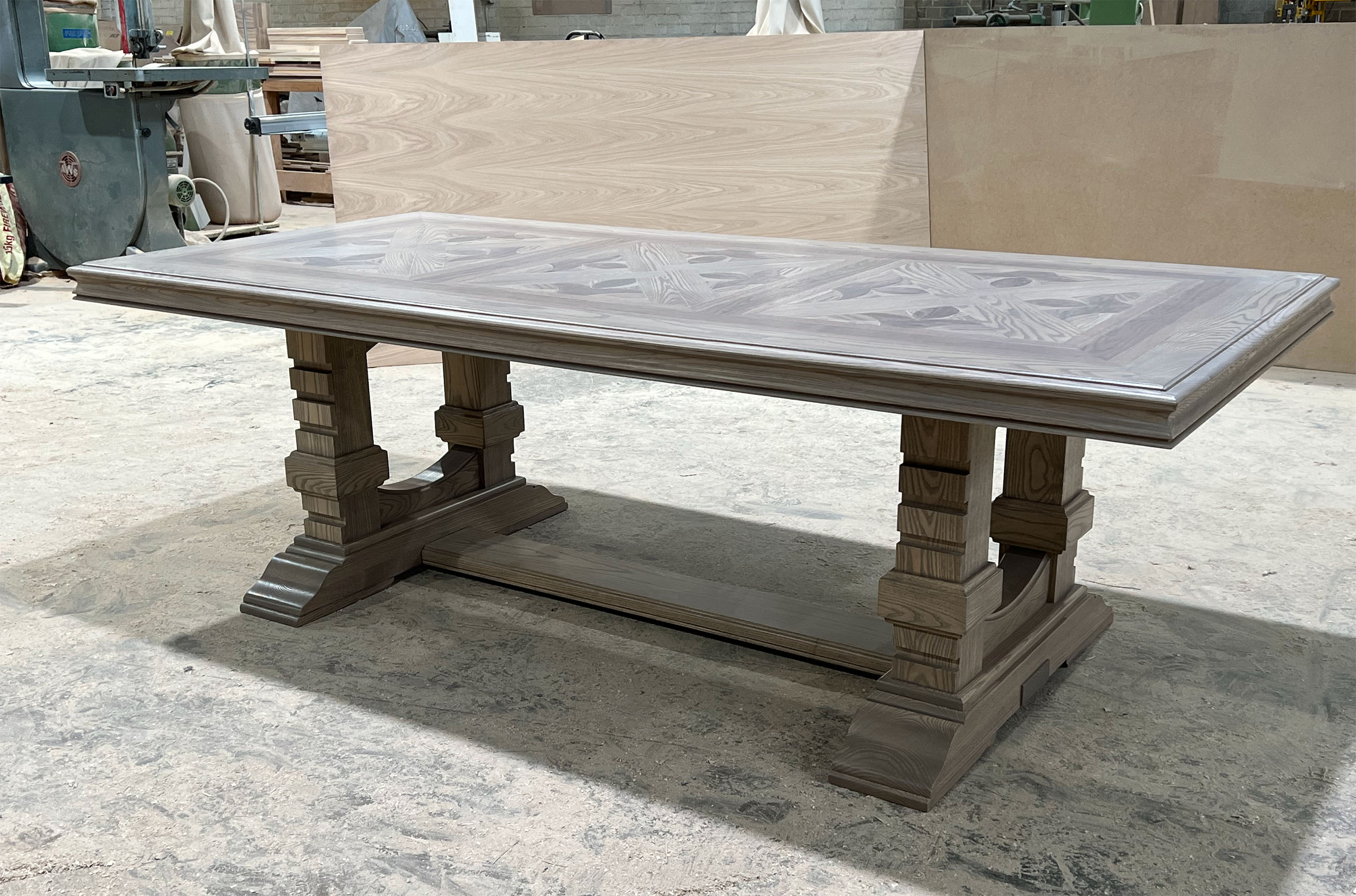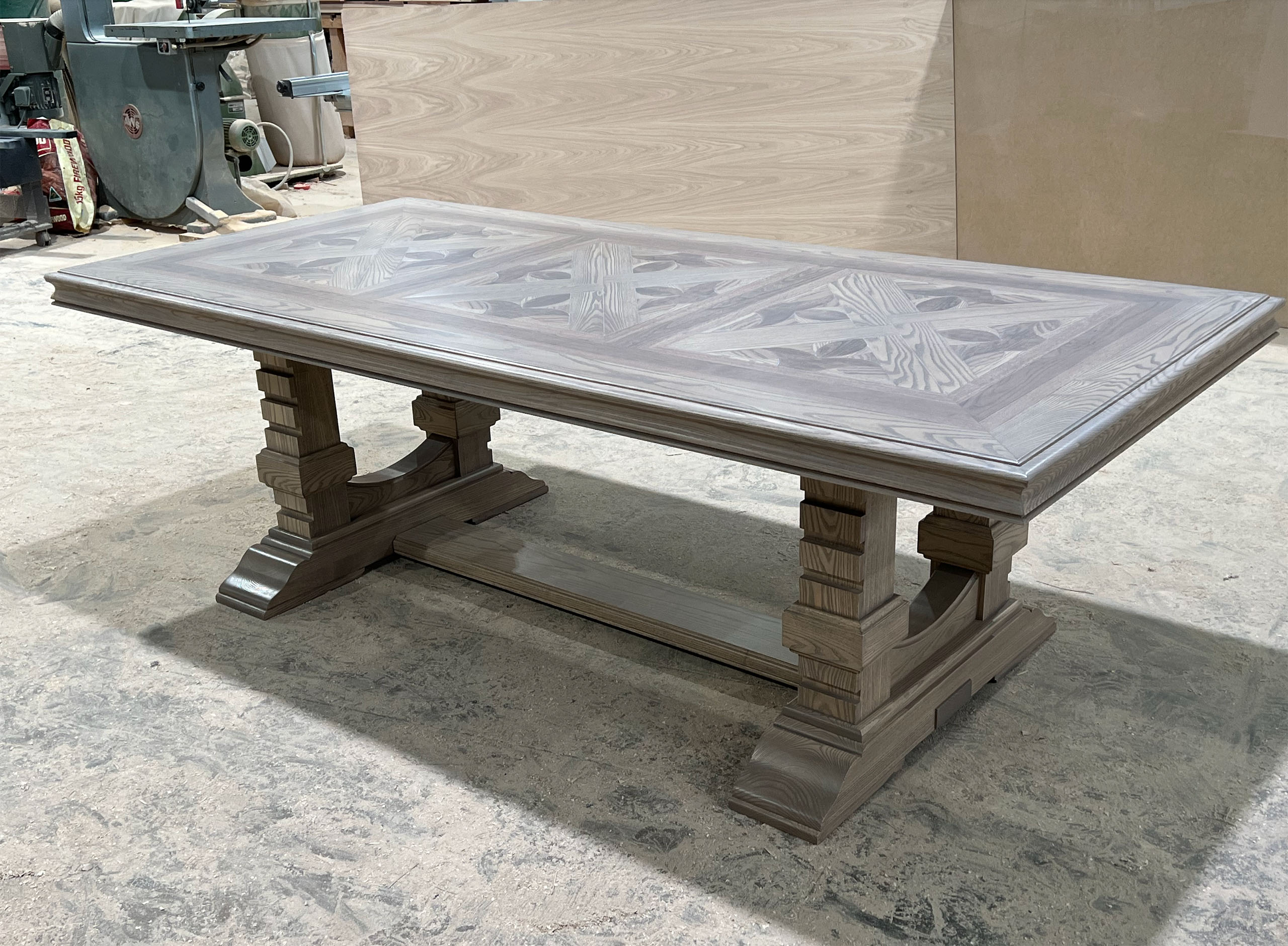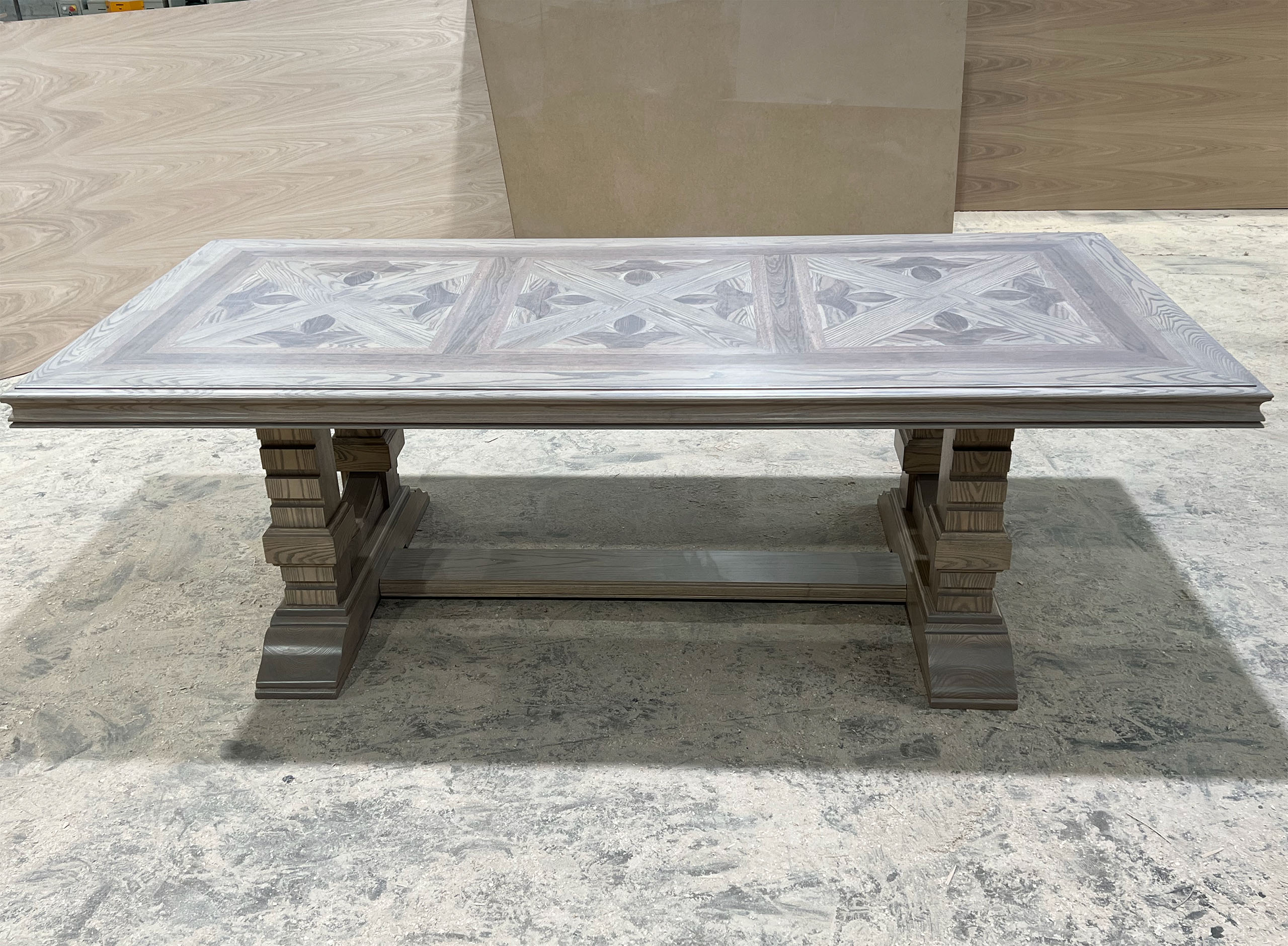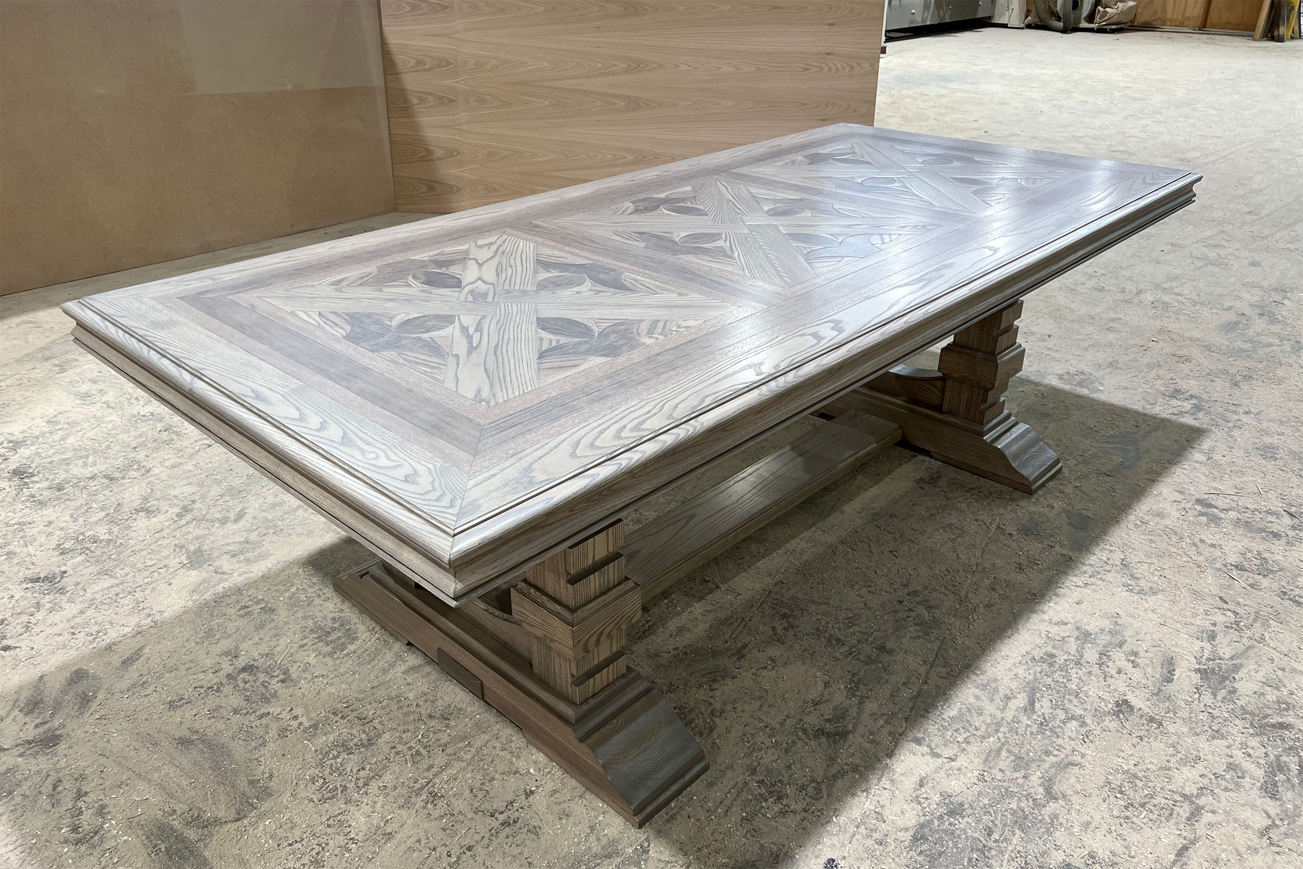 Each parquetry dining table is custom designed and entirely made in Australia to a premium level of quality and finish. Dimensions, parquetry design, colour, level of ageing, and finish of our luxury furniture can all be custom made to your specific requirements.