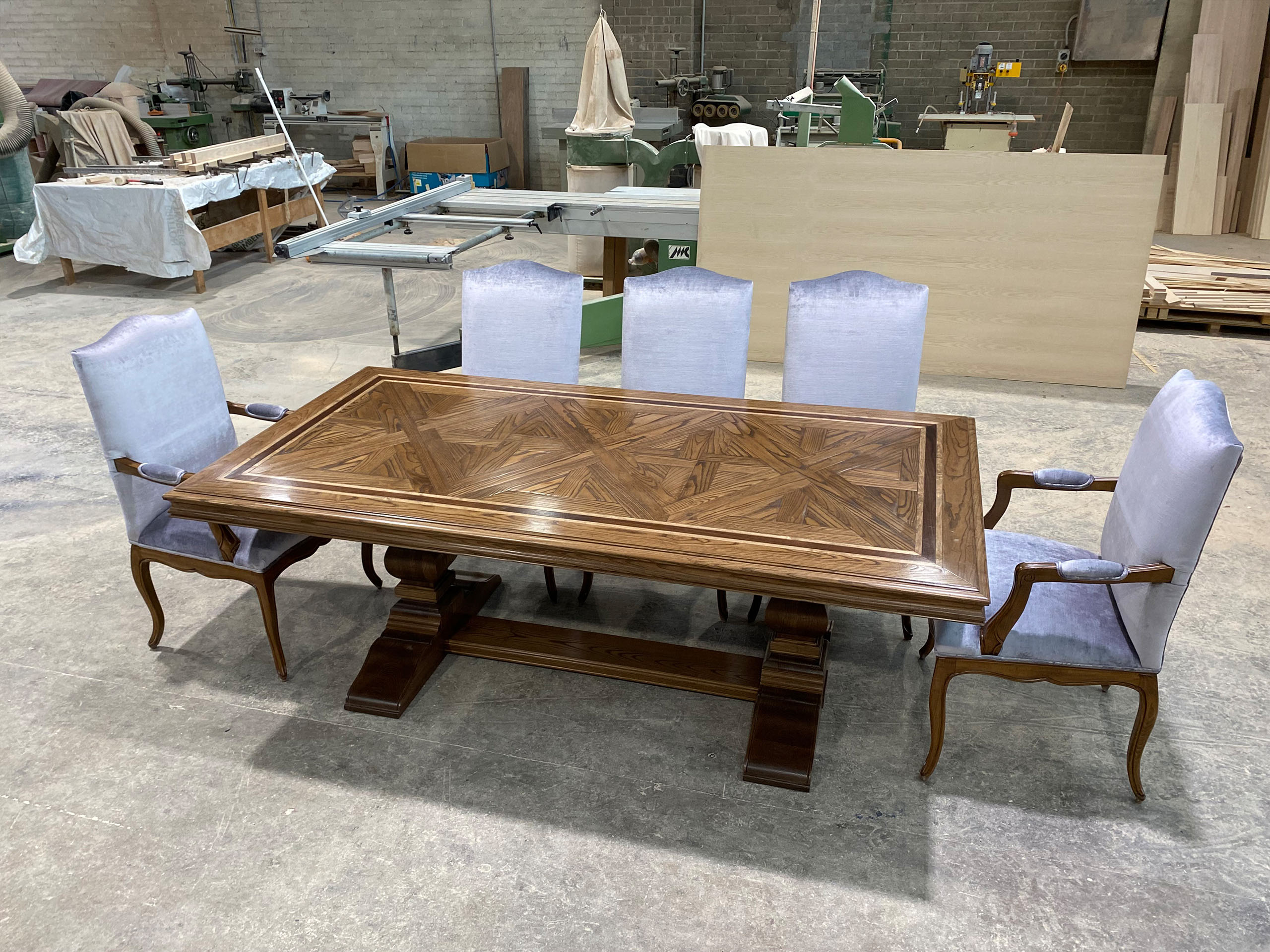 Each hand crafted dining table is custom designed and entirely made in Australia to a premium level of quality and finish. Dimensions, parquetry design, colour, level of ageing, and finish of our luxury furniture can all be custom made to your specific requirements.
