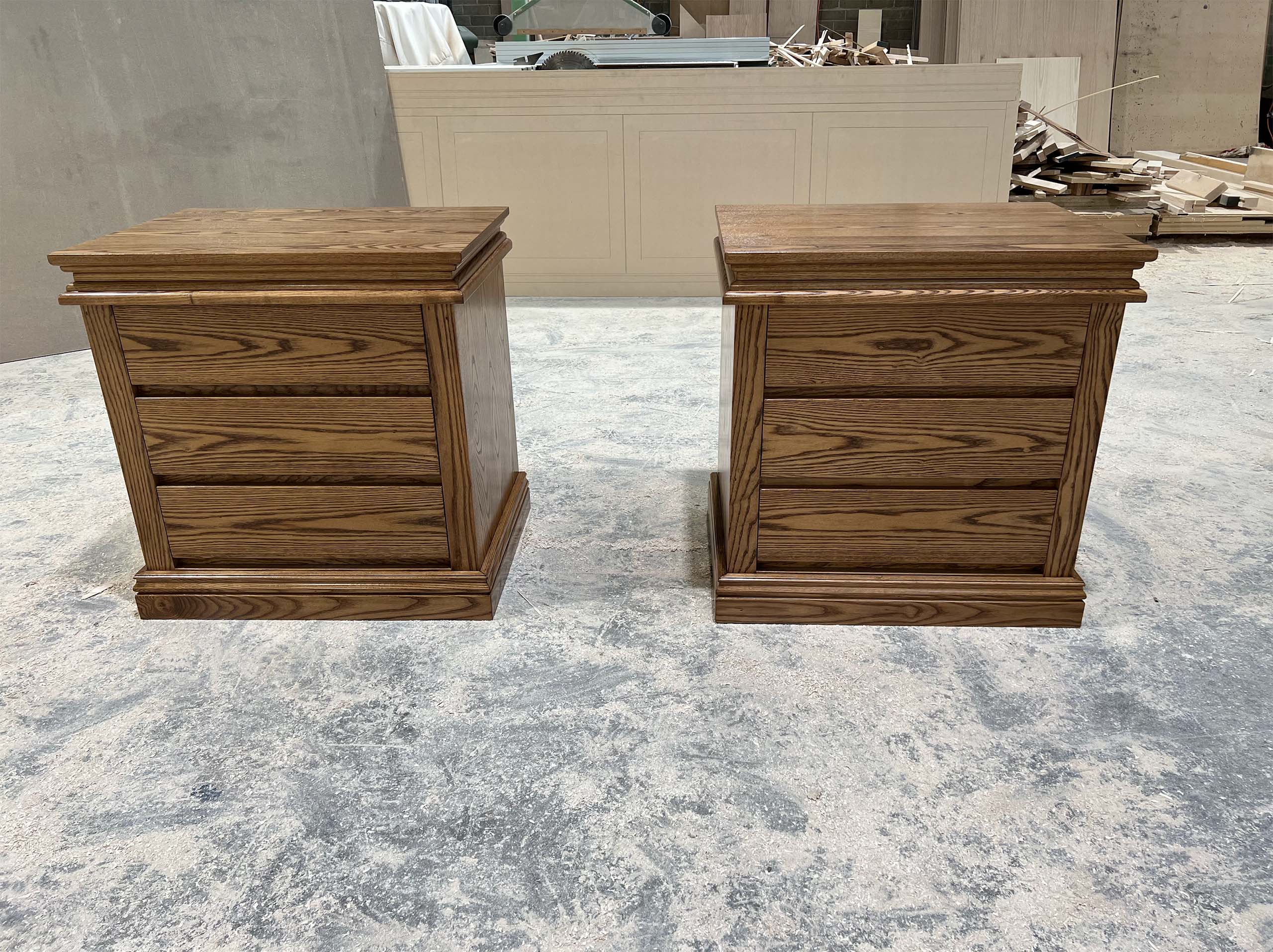 Custom designed and made three drawer timber bedside table. Stained in a custom colour to match the other timber items within the room and the rest of the home. Made to a high quality using premium materials and finishes for a superior result.