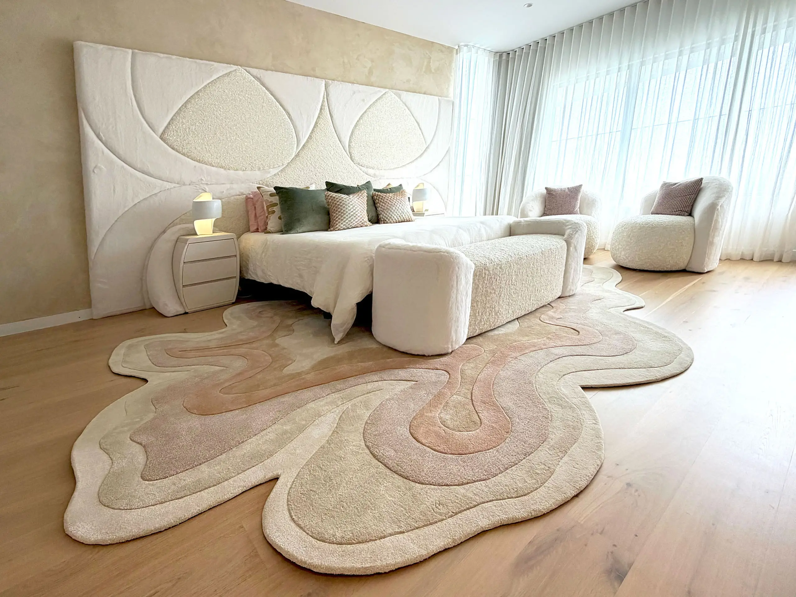 Inspired by the natural architecture of this stunning Brisbane home, luxury interior designer and furniture manufacturer Mark Alexander has custom designed and made a suite of pieces defined by sculptural silhouettes and architectural form. Curved profiles, strong proportions, and geometric detailing echo the home’s structure, creating furnishings that feel built in, not simply placed. A refined palette of natural accent tones is layered with rich, tactile fabrics to bring warmth and depth while keeping the look clean and effortless. With a balance of soft curves and crisp lines, each custom made piece enhances the flow of the interior and quietly elevates the space. As a renowned luxury interior designer in Brisbane, Mark has created distinctive furniture and decor that completes this Modern Mid Century home with a cohesive, architectural presence.
