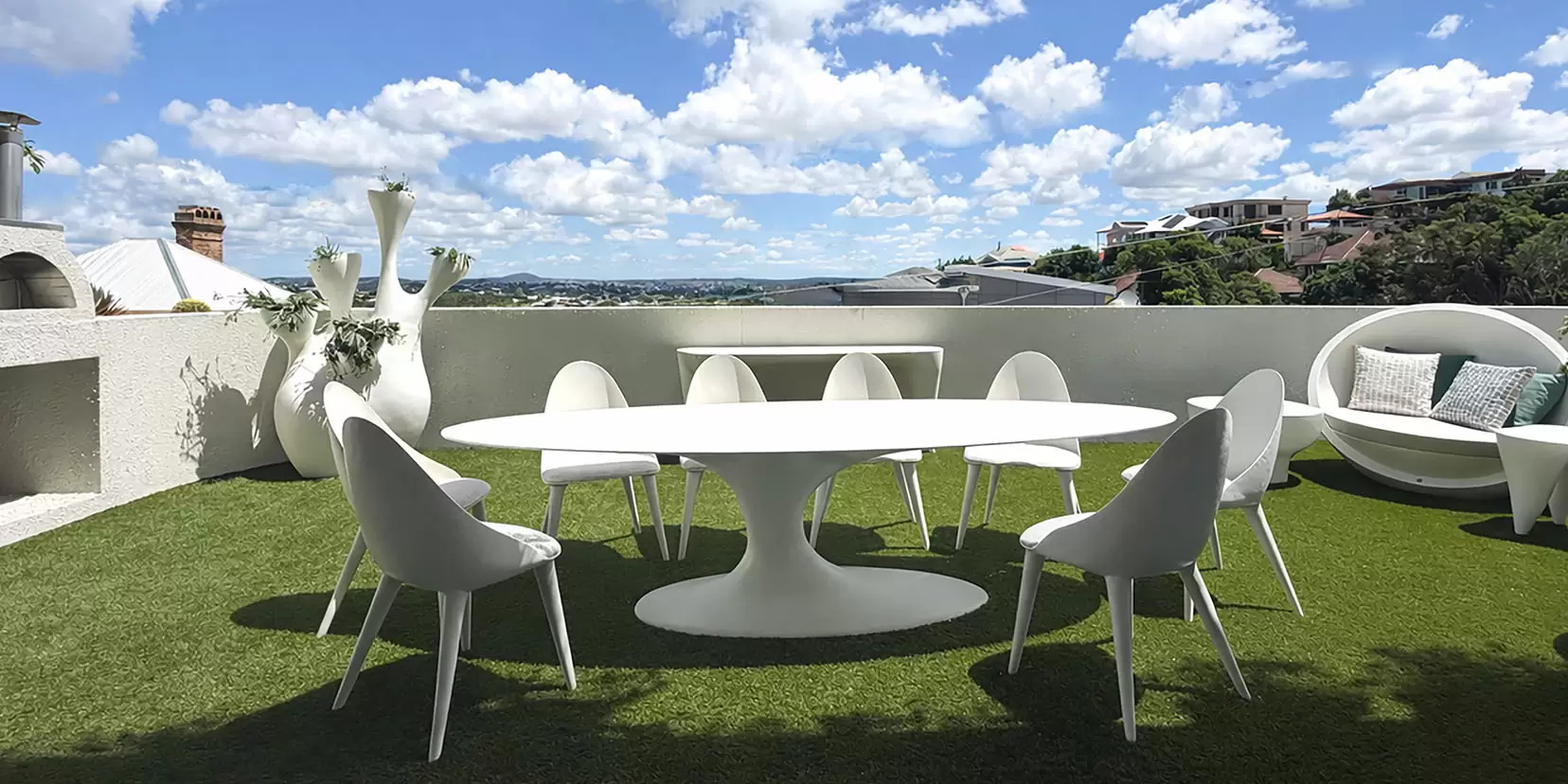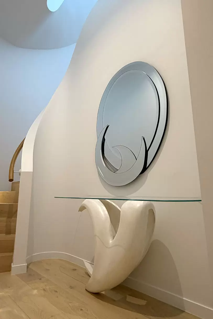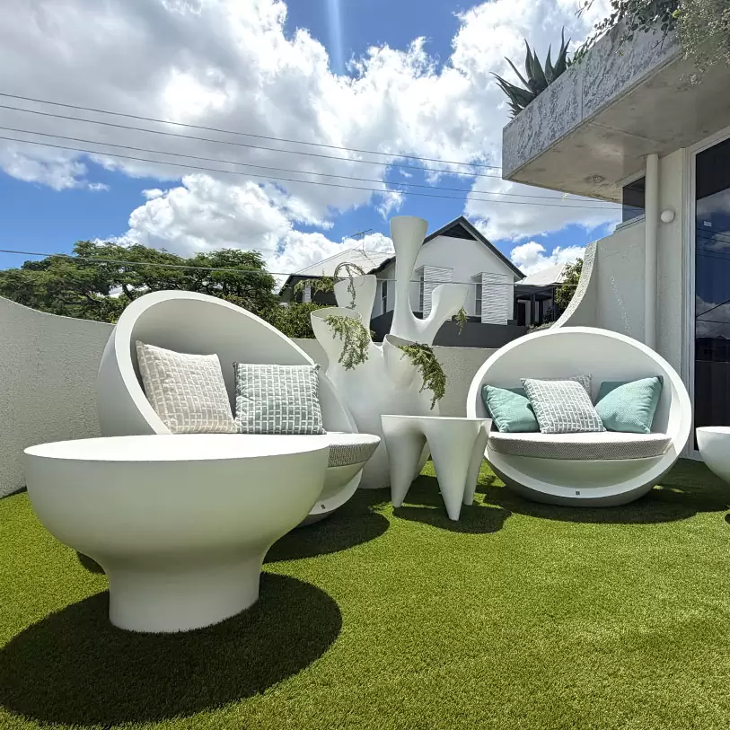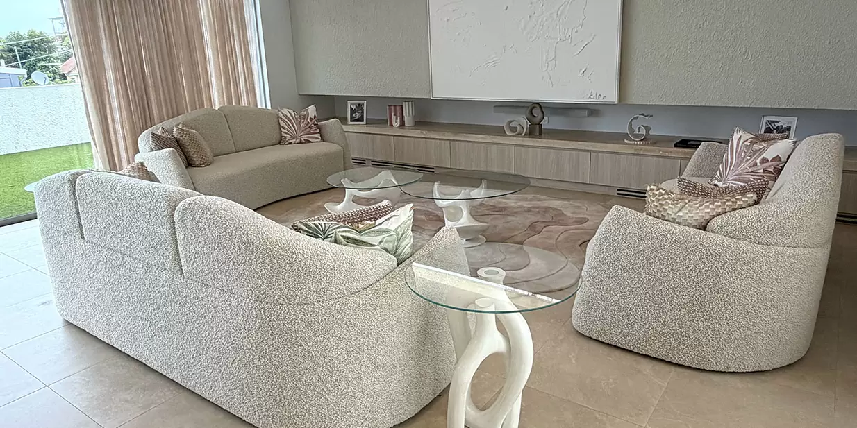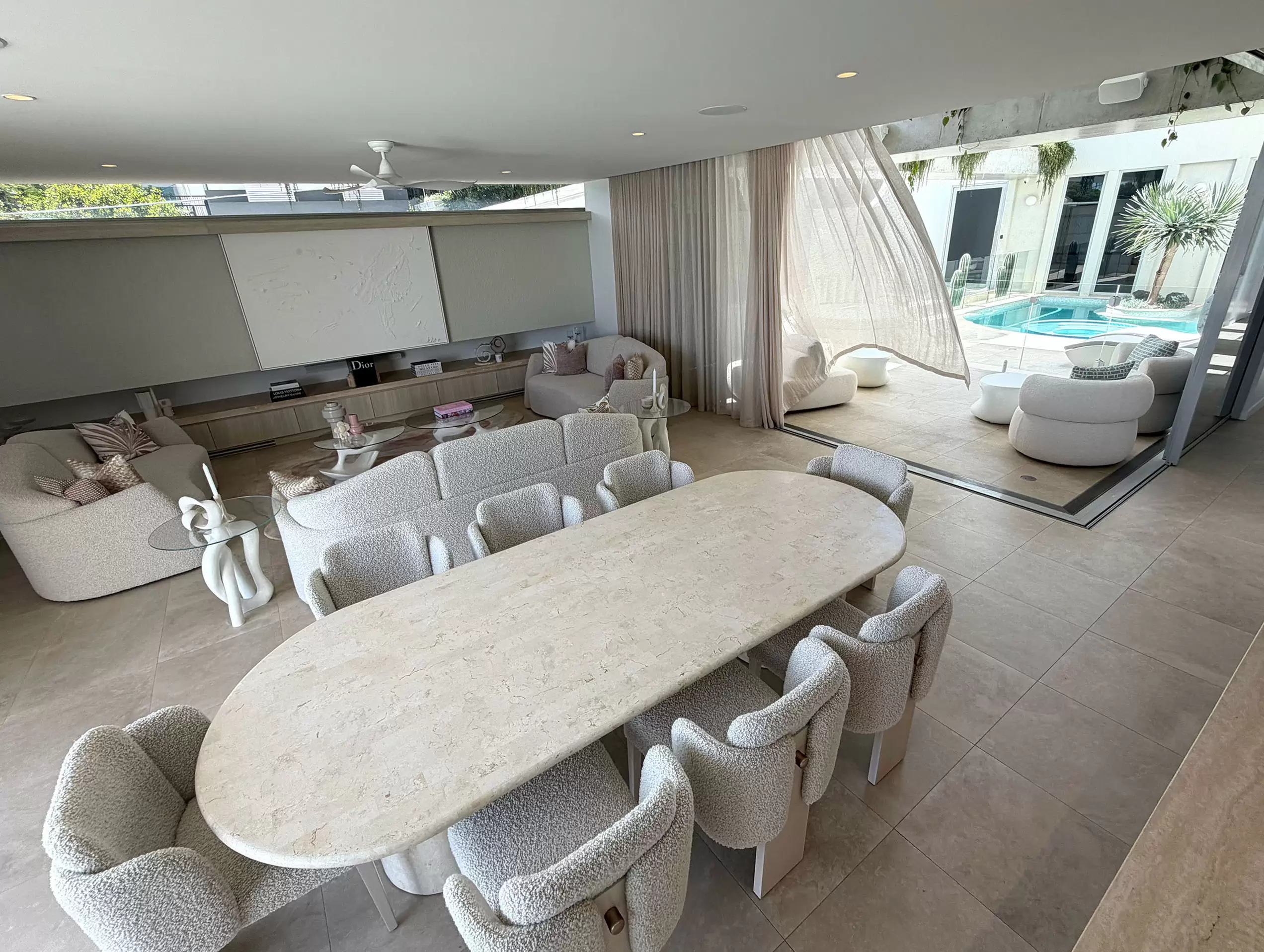 Inspired by the natural architecture of this Brisbane home, luxury interior designer, furniture designer and manufacturer Mark Alexander has custom designed and made a suite of pieces defined by sculptural silhouettes and architectural form. Curved profiles, strong proportions, and geometric detailing echo the home’s structure, creating furniture that feels integrated rather than placed. A refined palette of natural tones is layered with rich, tactile fabrics to bring warmth and depth while keeping the look clean and effortless. Balancing soft curves with crisp lines, each custom made piece enhances the flow of the interior, quietly elevating the space. Mark Alexander’s designs create a cohesive Modern Mid Century home with a distinctive, architectural presence.